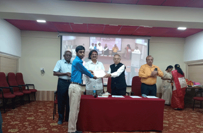 Prof. A.H.Ramarao, President, NES, awarded the prizes and preside-over the function. Dr. Satisha Karanth, Principal, NDCB, chief guest, Sri B.N.Venugopal and Smt. Archana, faculty co-ordinated the programme