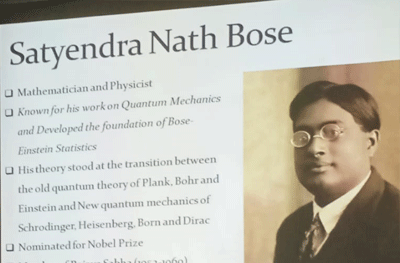 Prof. Venkatesh briefed the contributions of 20th Century scientists like Albert Einstein, Max Planck, Niels Bohr, Werner Heisenberg, Kelvin, Rutherford, Arnold Sommerfeld, Wolfgang Pauli, Erwin Schrodinger, Hendrik Lorentz and Indians like Meghanada Saha, C.V.Raman, S.Chandrasekhar, Satyendra Nath Bose, Homi J.Bhabha, Vikram Sarabhai and many more in his PPT presentation.