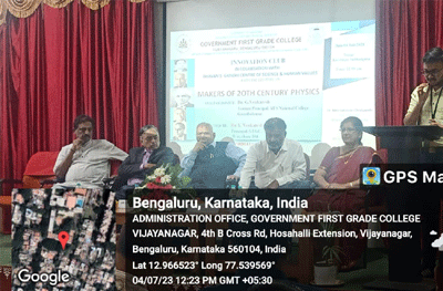 Karnataka Physics Associations Prof. Srikanta, Prof. Basavaraj, Prof. Nandan are also present. More than 200 students and faculty participated.