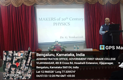 Speaker : Dr. G.Venkatesh, former Principal and Professor of Physics, AES National College, Gouribidanur.