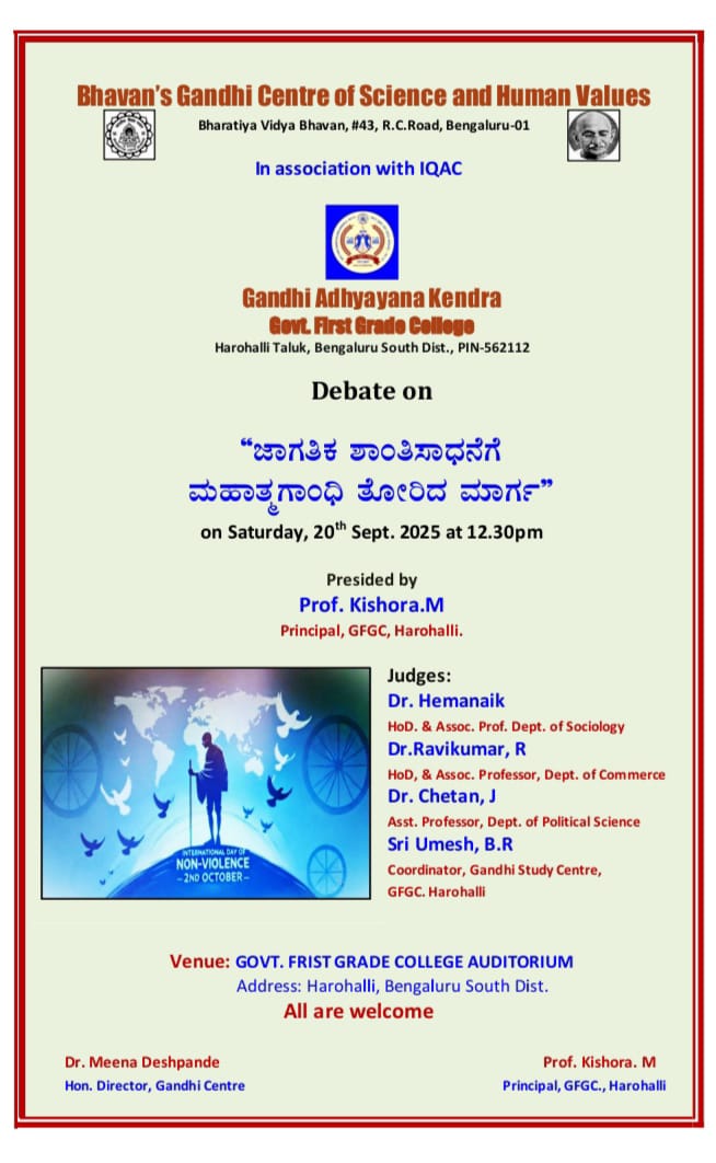 ಜಾಗತಿಕ ಶಾಂತಿಸಾಧನೆಗೆ ಮಹಾತ್ಮಗಾಂಧಿ ತೋರಿದ ಮಾರ್ಗ