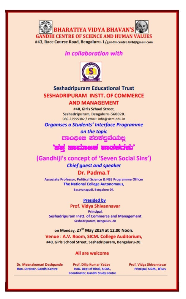 H.B.College, B'luru-01 on Friday, 14-2-2020 at 10.30a.m.